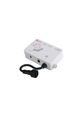 With the bespoken controller, users have full control over the flow rates by selecting amongst five preset speed settings; indicated by five lit LEDs. A 15 or 60 minute feed mode can also be engaged or disengaged with the push of a button.